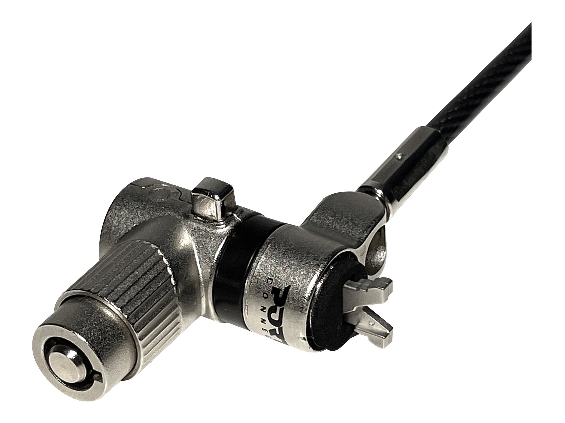 Le câble de sécurité universel à clé 901234 de PORT Connect est compatible avec les appareils ou périphériques munis d'une encoche de sécurité. Sa tête, ajustable à l'aide d'un tournevis, convient aussi bien à une encoche standard, Nano que Noble Wedge. Ce câble est livré avec deux clés utilisateur uniques. Son câble en acier tressé avec gainage PVC transparent assure solidité et sécurité. Conçu à partir d'un alliage de zinc et un plaquage en nickel, le câble est très robuste.