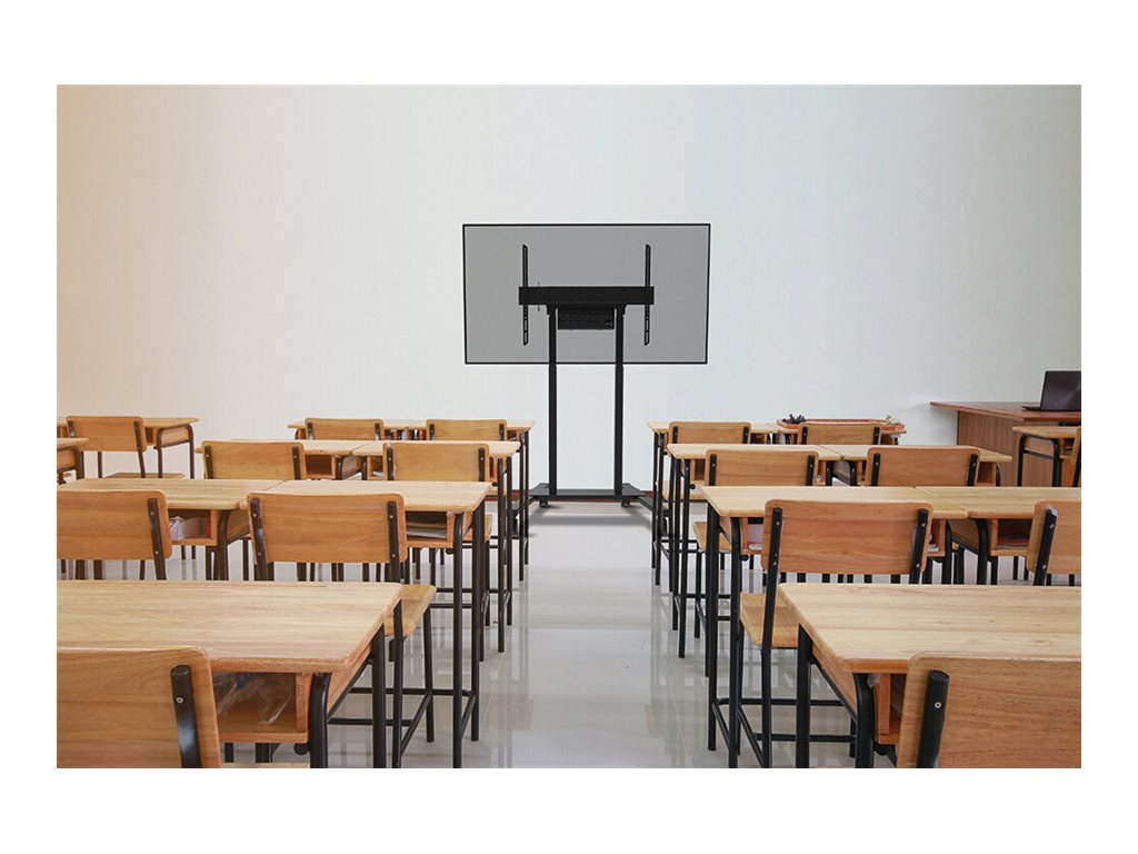 Le chariot Move Lift est équipé de poignées pratiques et de quatre solides roulettes de 10 cm à double blocage qui permettent de déplacer et d'utiliser le pied de sol où vous le souhaitez. Grâce à ses grandes roues, le FL55-875BL1 n'a aucune difficulté à franchir les seuils ou les tapis. La conception de la marche ouverte permet d'accéder facilement à l'écran (tactile) et facilite le déplacement d'objets. Un support pratique de gestion des câbles à l'arrière du chariot garantit un déplacement aisé et sûr. En outre, un espace avec des trous de fixation est disponible au bas du chariot pour l'installation d'une multiprise.