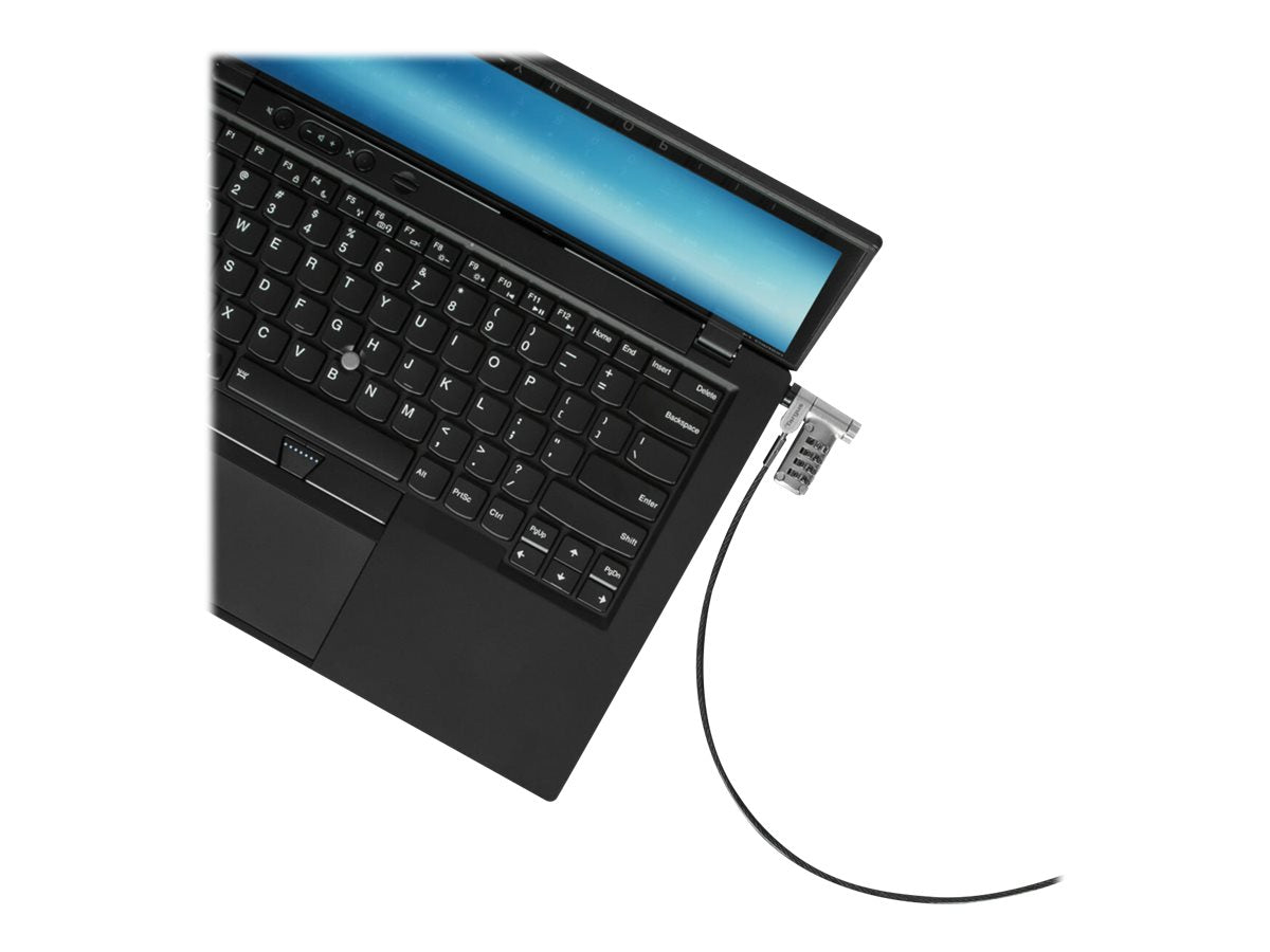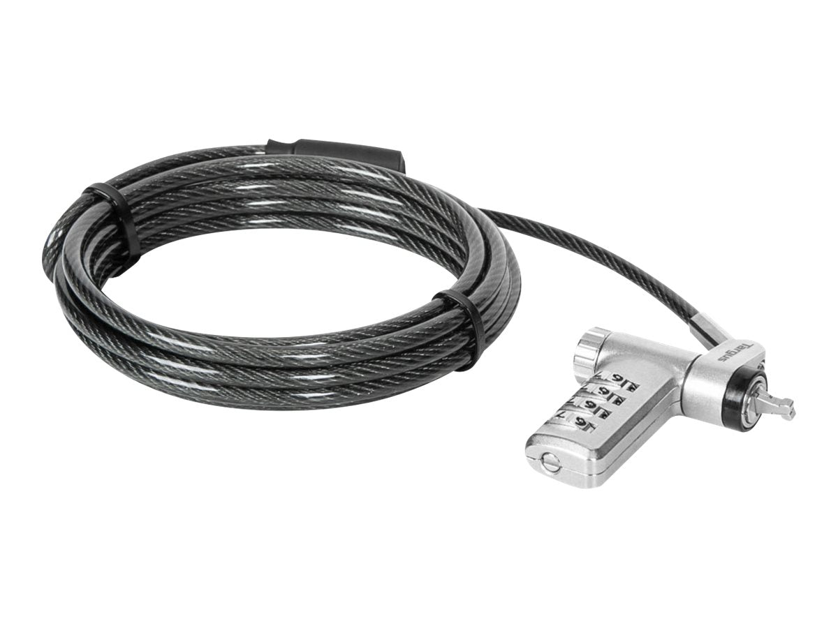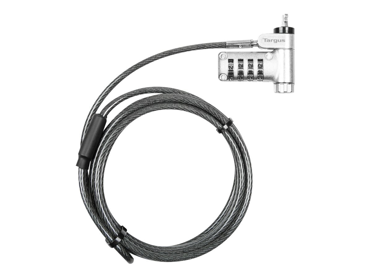 Targus DEFCON Ultimate - Câble de sécurité - sérialisé universel - argent - 2 m (pack de 25)Que votre équipe travaille à domicile, dans un salon d'aéroport ou dans un café, les verrous pour ordinateurs portables sont indispensables si vous voulez sécuriser votre équipement et vous assurer que personne ne s'empare d'informations précieuses ou privées. Le DEFCON Ultimate Universal Serialized Combination Lock - 25 Pack est le compagnon de sécurité idéal car les verrous sont faciles à utiliser et à transporter grâce à leur taille fine, ce qui les rend parfaits pour les appareils minces. Le cadenas se fixe à la plupart des principaux modèles de fentes de verrouillage comme Kensington Nano, Kensington K-Slot, même les fentes de verrouillage Noble surdimensionnées en forme de coin, garantissant que les ordinateurs portables, les stations d'accueil ou les moniteurs restent à l'endroit où ils doivent être.