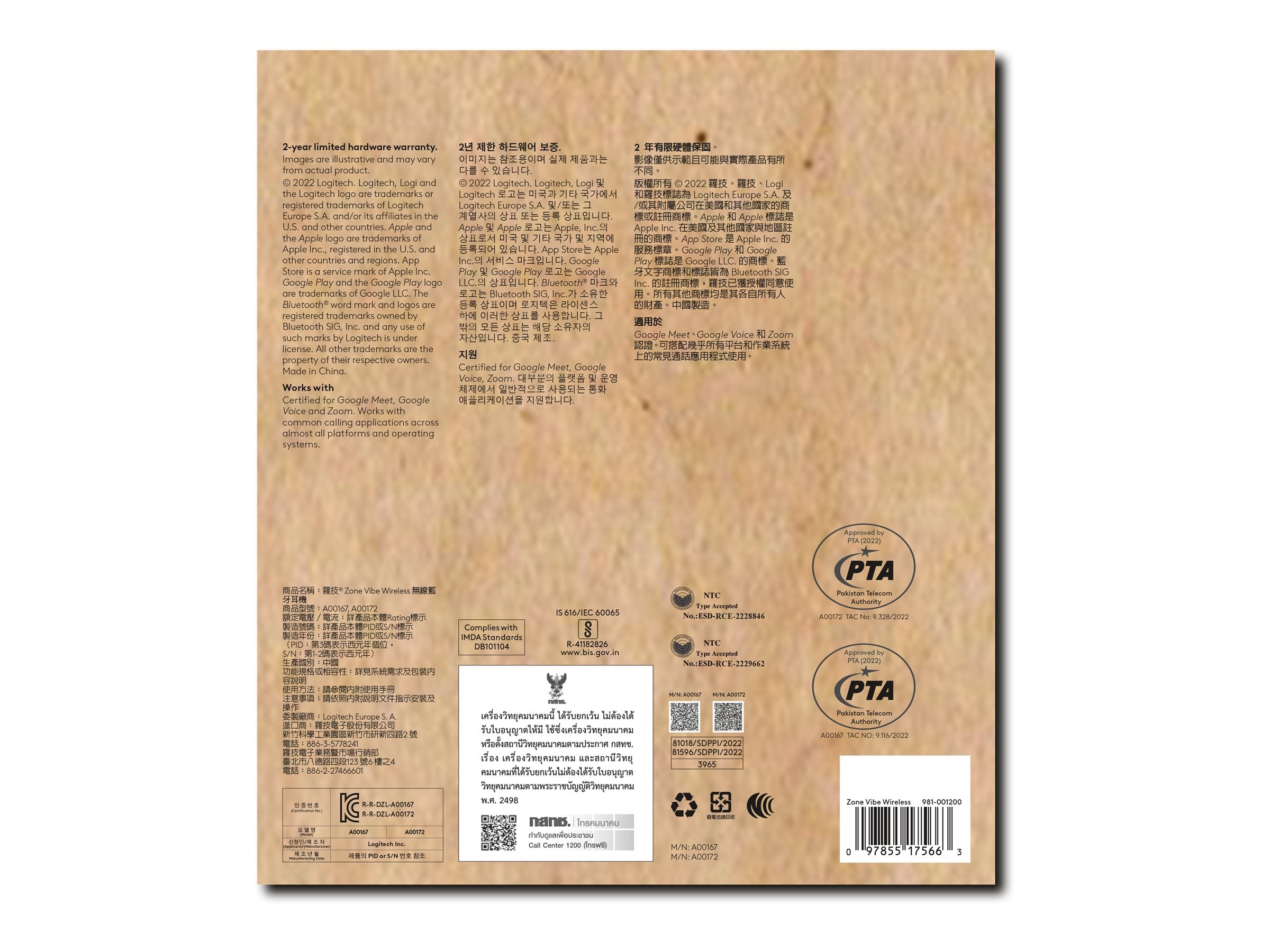 - LOGITECH Zone Vibe Wireless UC headset - GRAPHITE A00167/A00172 UC MFI
