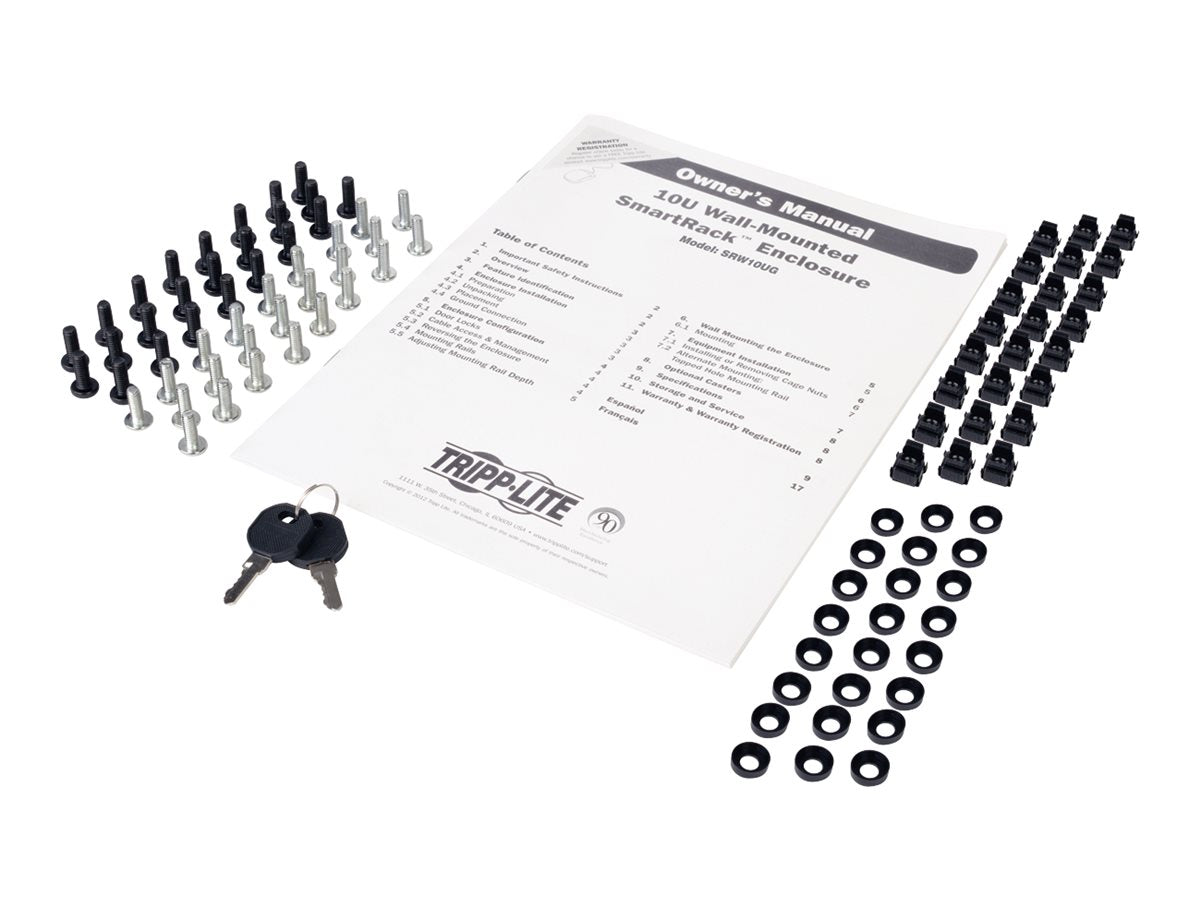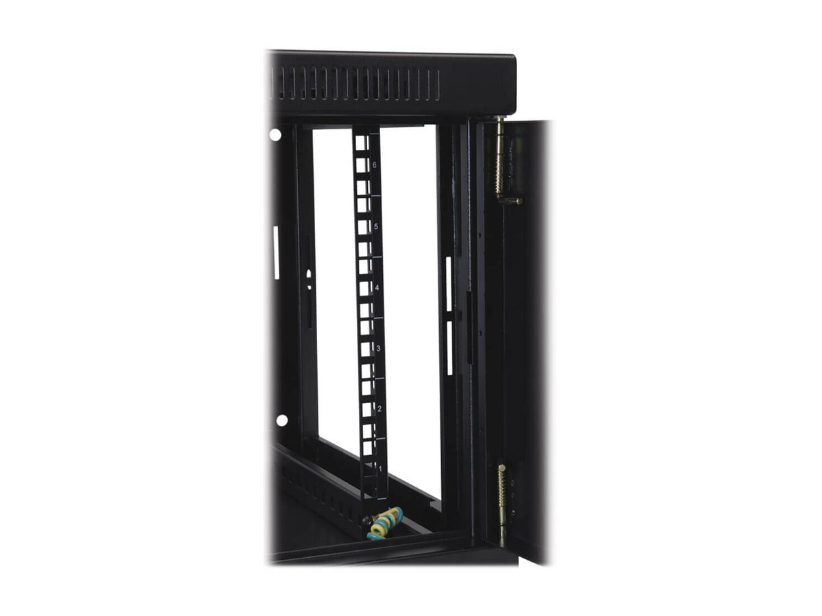 Eaton Tripp Lite Series 10U Wall Mount Rack Enclosure Server Cabinet w/Swinging Door Acrylic Window - Rack armoire - montable sur mur - noir - 10U - 19"L'armoire serveur Eaton Tripp Lite Series 10U Wall Mount Rack Enclosure est conçue pour offrir fonctionnalité et sécurité dans un espace compact. Grâce à sa construction robuste en acier, ce rack peut être monté au mur et constitue une solution pour la gestion des équipements réseau tout en économisant de l'espace au sol. Sa porte avant et son panneau latéral verrouillables garantissent la sécurité des composants de valeur, tandis que la porte avant en PLEXIGLAS permet de voir facilement l'équipement à l'intérieur. La profondeur réglable offre une grande souplesse d'installation et les panneaux latéraux ventilés favorisent la circulation de l'air afin de maintenir les performances optimales de l'équipement. L'inclusion d'un kit de montage simplifie le processus d'installation, ce qui permet de l'adapter à divers environnements, du bureau à domicile aux locaux commerciaux. Ce rack supporte une limite de poids de 90,7 kg et est conforme à la taille d'un rack standard de 19 pouces, ce qui en fait un choix idéal pour organiser les serveurs et autres équipements essentiels de manière sûre et efficace.