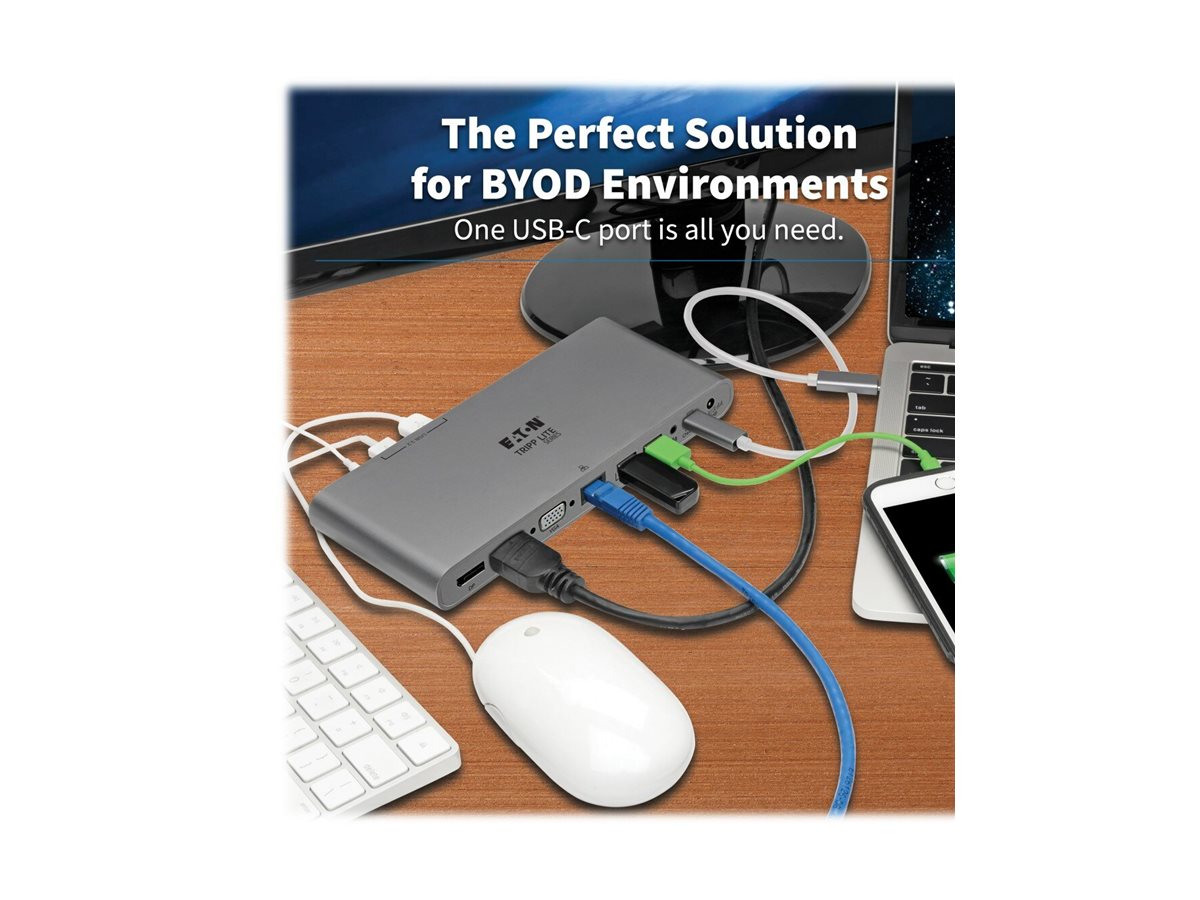 EATON TRIPPLITE USB-C Dock Triple Display - 4K HDMI/DisplayPort VGA USB 3.2 Gen 1 USB-A/USB-C Hub GbE 100W PD Charging International