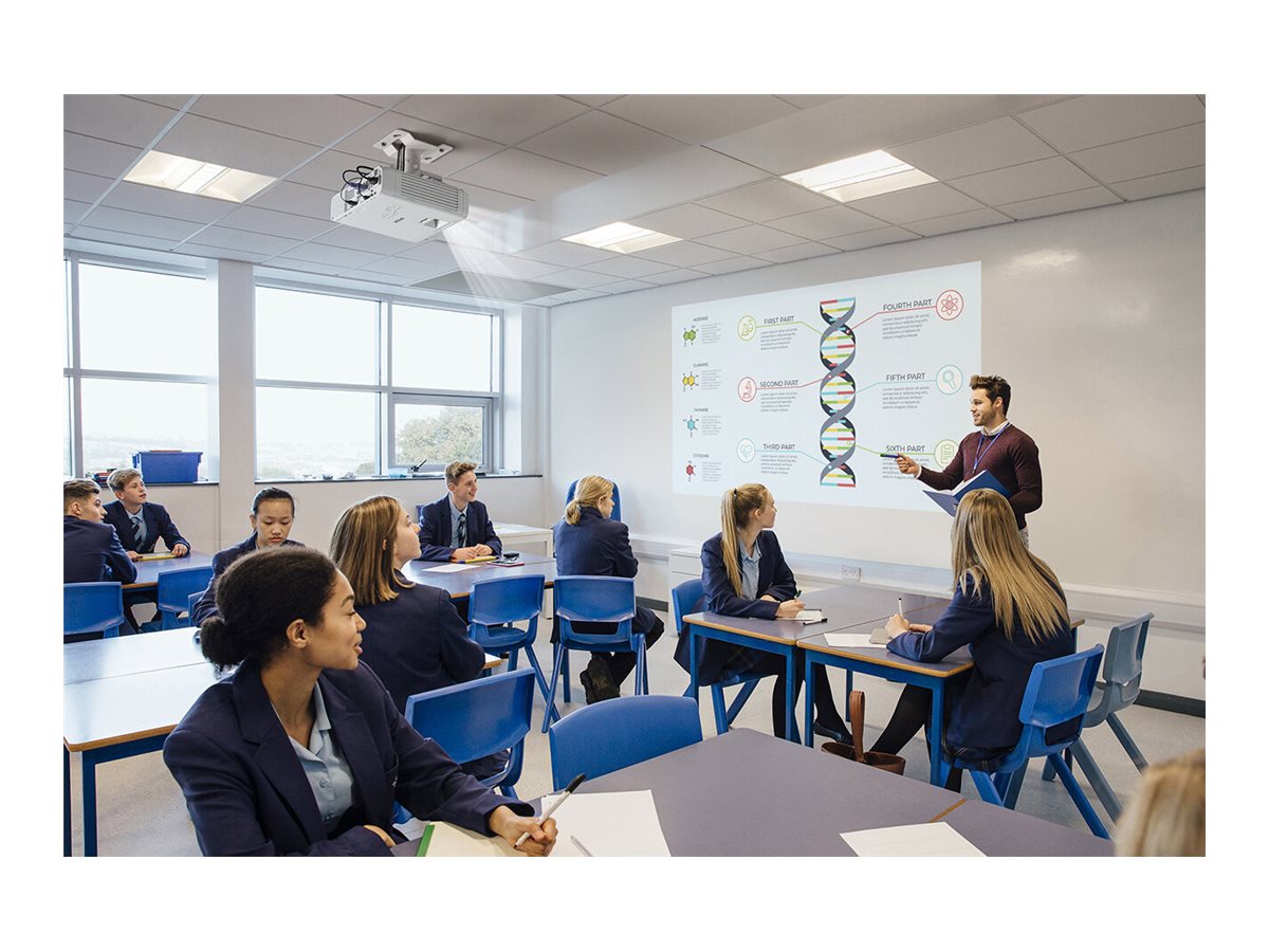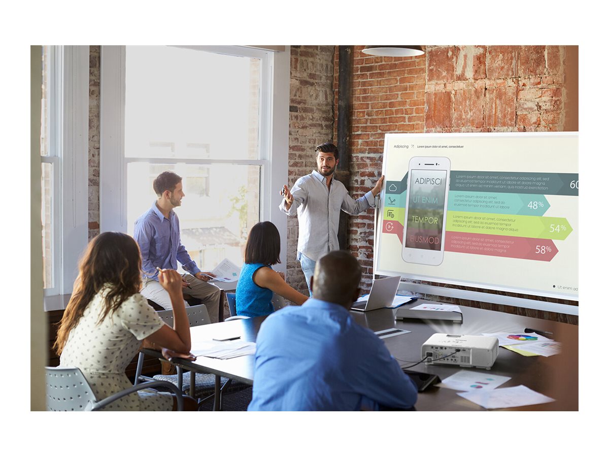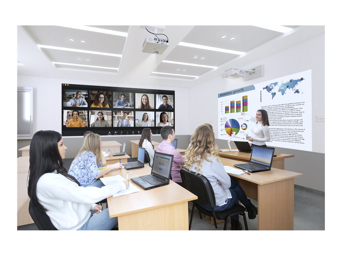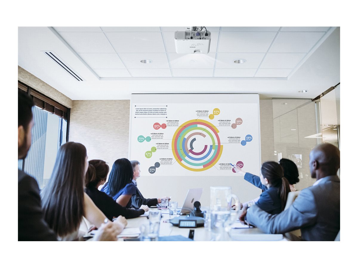 Combiné à des fonctionnalités avancées, le projecteur laser sans fil Full HD EB-L260F est la solution idéale pour tous les environnements de travail. Il offre une luminosité de 4 600 lumens, un large éventail de connexions sans fil et filaires, ainsi qu'une taille d'image évolutive pouvant atteindre 310 pouces (7,9 m).