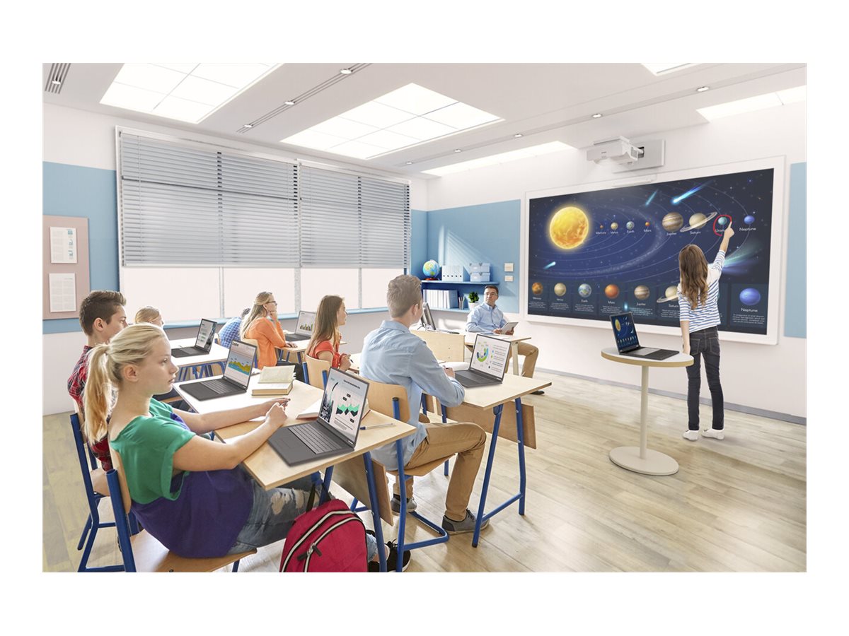 Le projecteur EB-760Wi produit une image éclatante, pouvant atteindre 100 pouces, clairement visible sous n'importe quel angle, même de loin. Il est en outre facile de partager ou de diffuser du contenu directement depuis plusieurs appareils pour une expérience parfaitement collaborative.