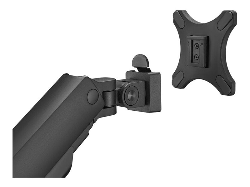 Les plaques VESA noires du NEXT One s'intègrent élégamment au dos noir de vos écrans. Le DS70S-950BL2 convient aux écrans qui répondent au modèle de trou VESA 75x75 ou 100x100 mm. Le bras du moniteur est équipé d'un système VESA à fixation rapide et est livré avec une pince topfix et un passe-fil pour une installation rapide et facile.