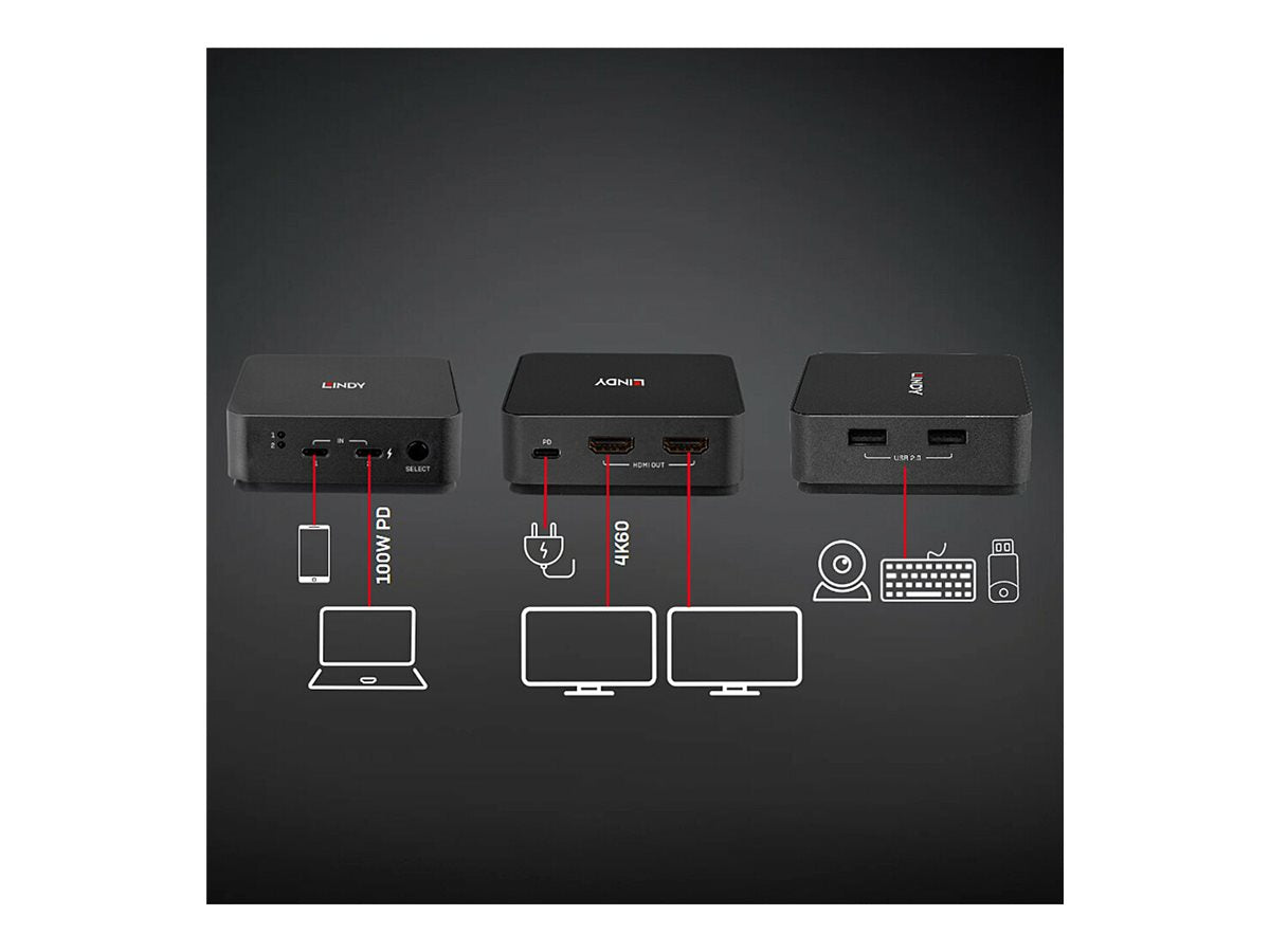 - LINDY 2 Port Type C Dual HDMI 4K60 KVM Switch