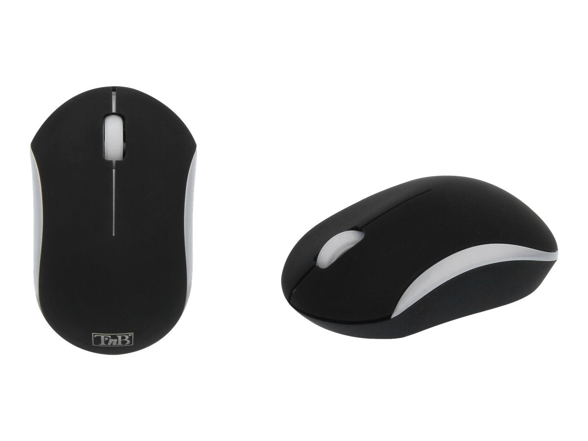 T'nB RUBBY - Souris - ergonomique - optique - 3 boutons - sans fil - 2.4 GHz - récepteur sans fil USB - noir, argentSouris sans fil à pile avec veille automatique et bouton ON/OFF.