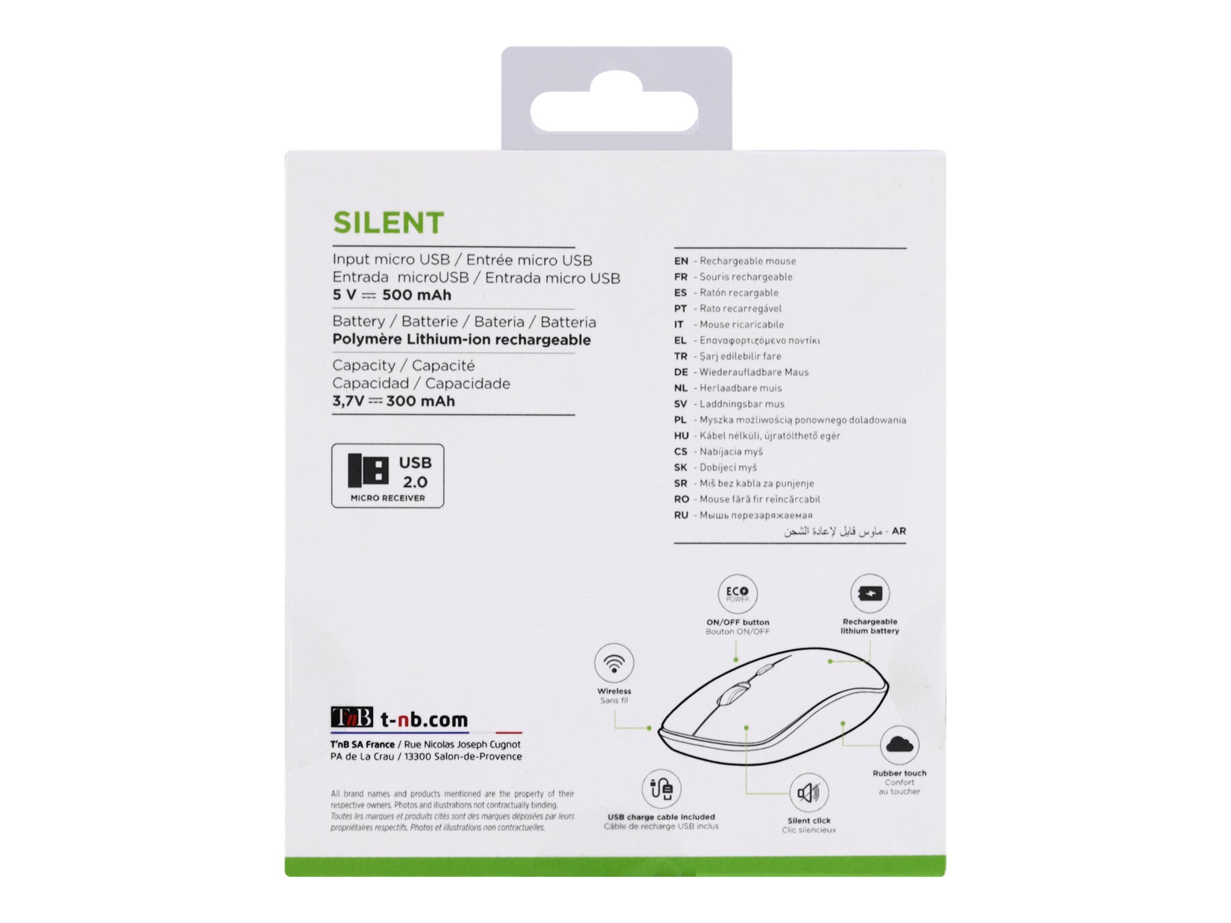 T'nB RUBBY - Souris - 3 boutons - sans fil - récepteur sans fil USB - gris foncéSouris sans fil rechargeable avec veille automatique et bouton ON/OFF.