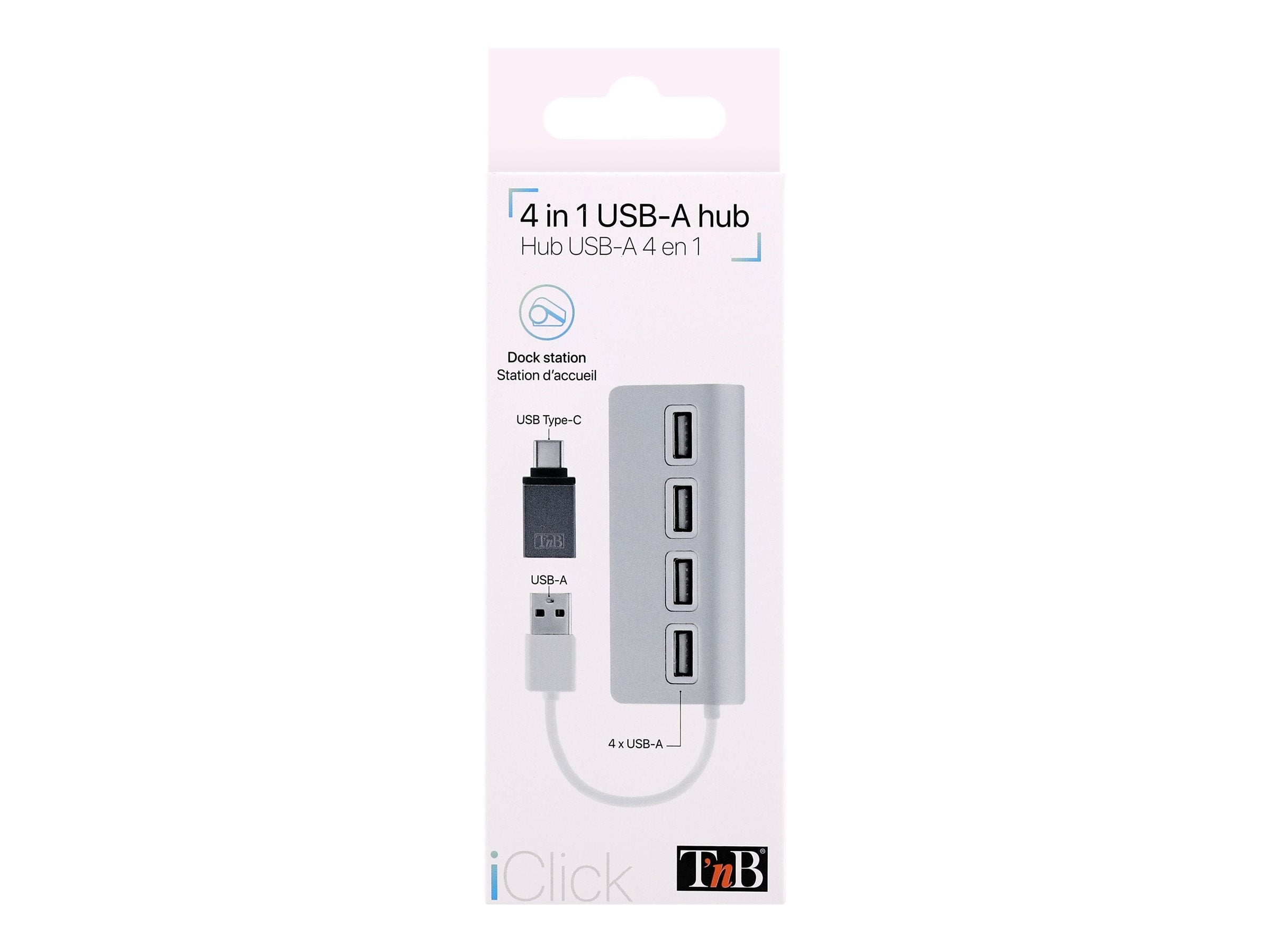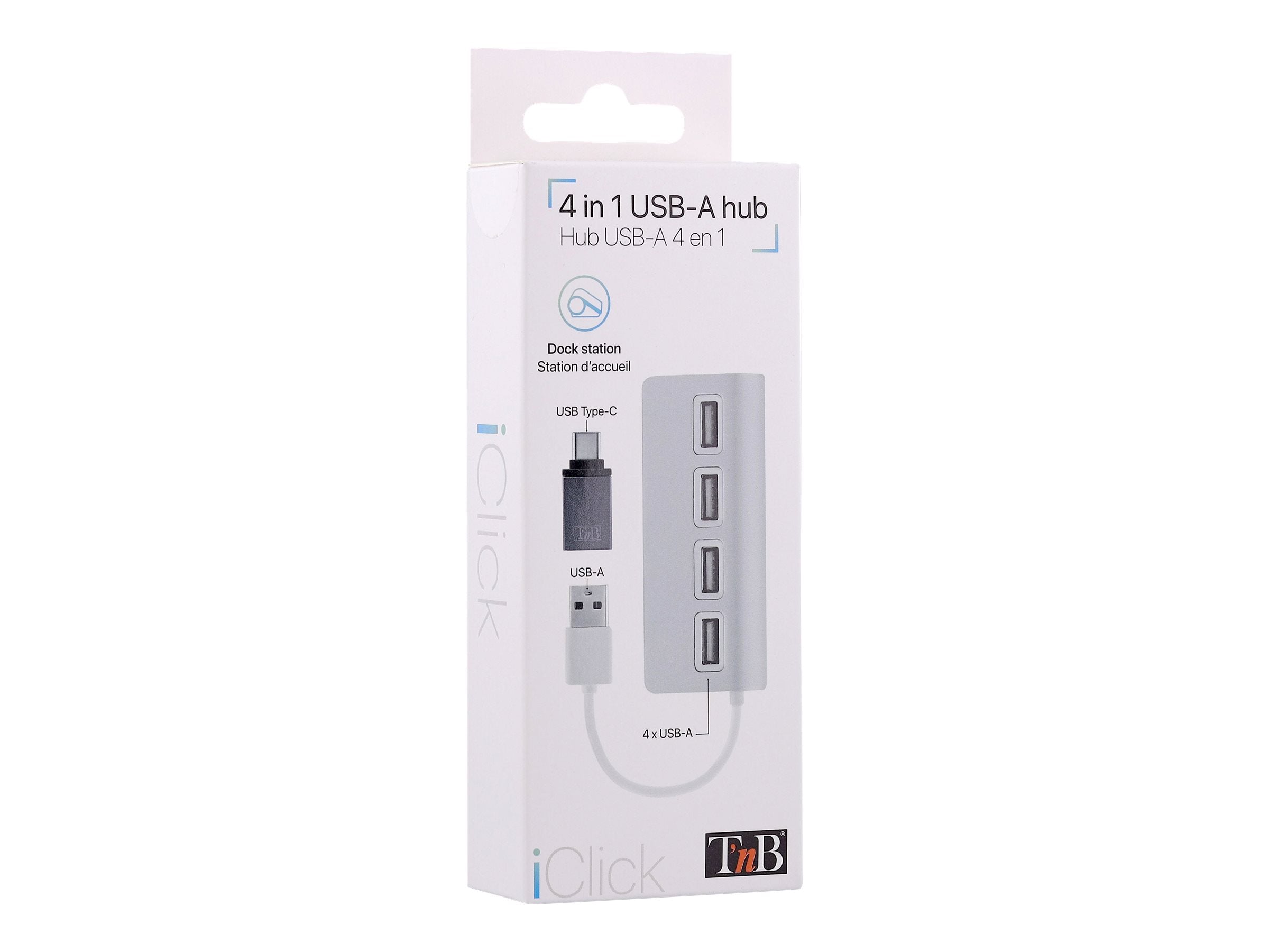 T'nB - Concentrateur (hub) - USB-A, en aluminium - 4 x USB 2.0 - de bureauConnectez 4 accessoires USB-A en simultané grâce à ce hub.