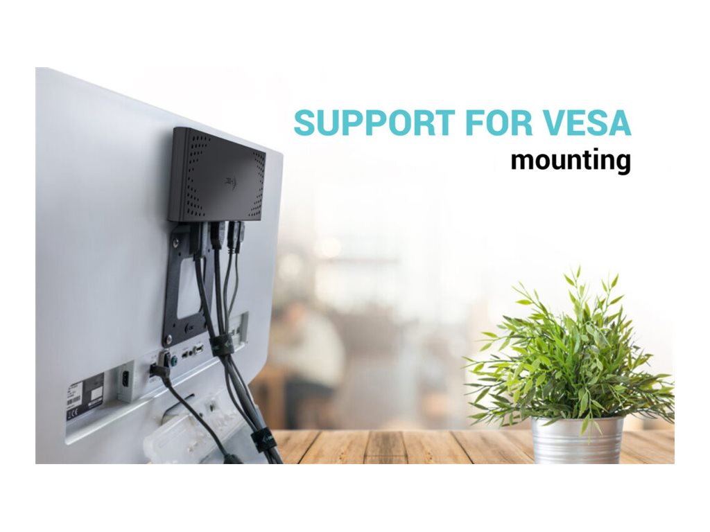 De nombreux ports USB (y compris ceux prenant en charge les vitesses Gen 2 jusqu'à 10 Gb/s), une connexion fiable et rapide au réseau d'entreprise grâce au port LAN intégré et la prise en charge de l'installation derrière le moniteur, tout cela fait de cette station d'accueil le compagnon idéal des vrais professionnels. Bien entendu, elle prend en charge la recharge de votre ordinateur portable ou de votre tablette, jusqu'à 100 W.