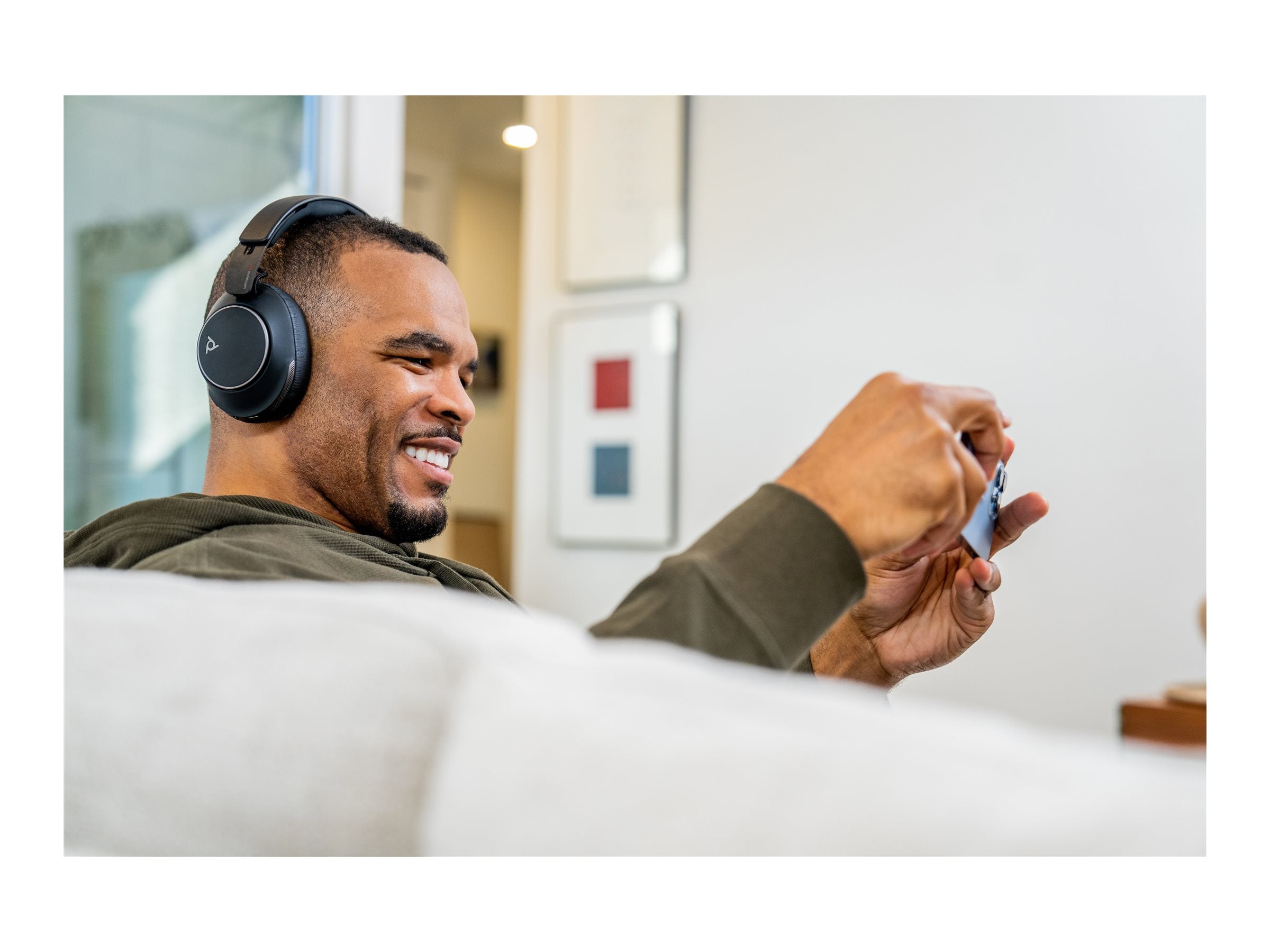 Poly Voyager Surround 80 UC - Voyager Surround 80 series - micro-casque - circum-aural - Bluetooth - sans fil - Suppresseur de bruit actif - USB-C via un adaptateur Bluetooth - noir - certifié pour Microsoft Teams Open OfficeTravaillez où vous le souhaitez et profitez d'un son optimal grâce à ce micro-casque Bluetooth circum-aural sans perche. Plongez au cœur d'un son riche, profitez d'un confort absolu grâce aux coussinets doux et au serre-tête ajustable, et maintenez votre concentration grâce au système ANC adaptatif.