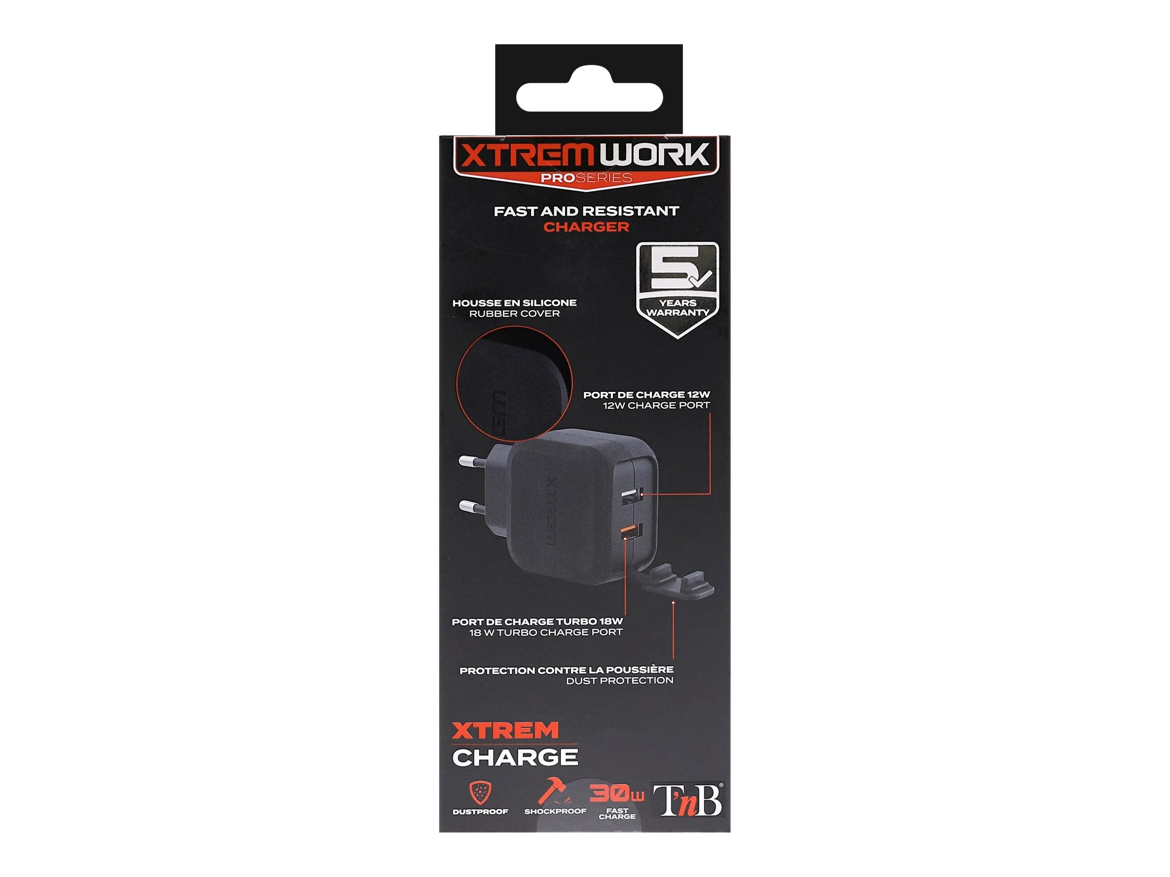 T'nB XTREMWORK ProSerie - Adaptateur secteur - 30 Watt - 3 A - QC 3.0 - 2 connecteurs de sortie (USB) - noir