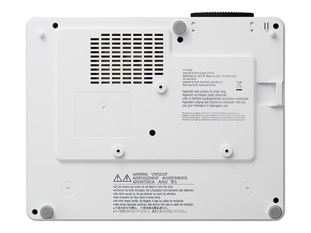 Ricoh PJ WUL5860 - Projecteur DLP - laser - 4000 lumens - WUXGA (1920 x 1200) - 16:10 - 4KLa famille de petits vidéo projecteurs RICOH comprend deux modèles, le PJ WXL5860 et le PJ WUL5860, tous deux parfaits pour une utilisation quotidienne dans les petits bureaux et les salles de reunion. Vue latérale du vidéoprojecteur laser compact RicohAlors, qu'est-ce qui les différencie? Les deux modèles sont des petits vidéo projecteurs intelligents qui ne font aucun compromis sur la luminosité ou la puissance. Le PJ WXL5860 affiche une puissante luminosité de 4 700 lumens, tandis que le PJ WUL5860 offre une luminosité impressionnante de 4 000 lumens. De plus, le PJ WUL5860 est doté d'une puce WUXGA, et sa capacité haute résolution facilite la réalisation de présentations à partir d'ordinateurs portables sans redimensionnement.