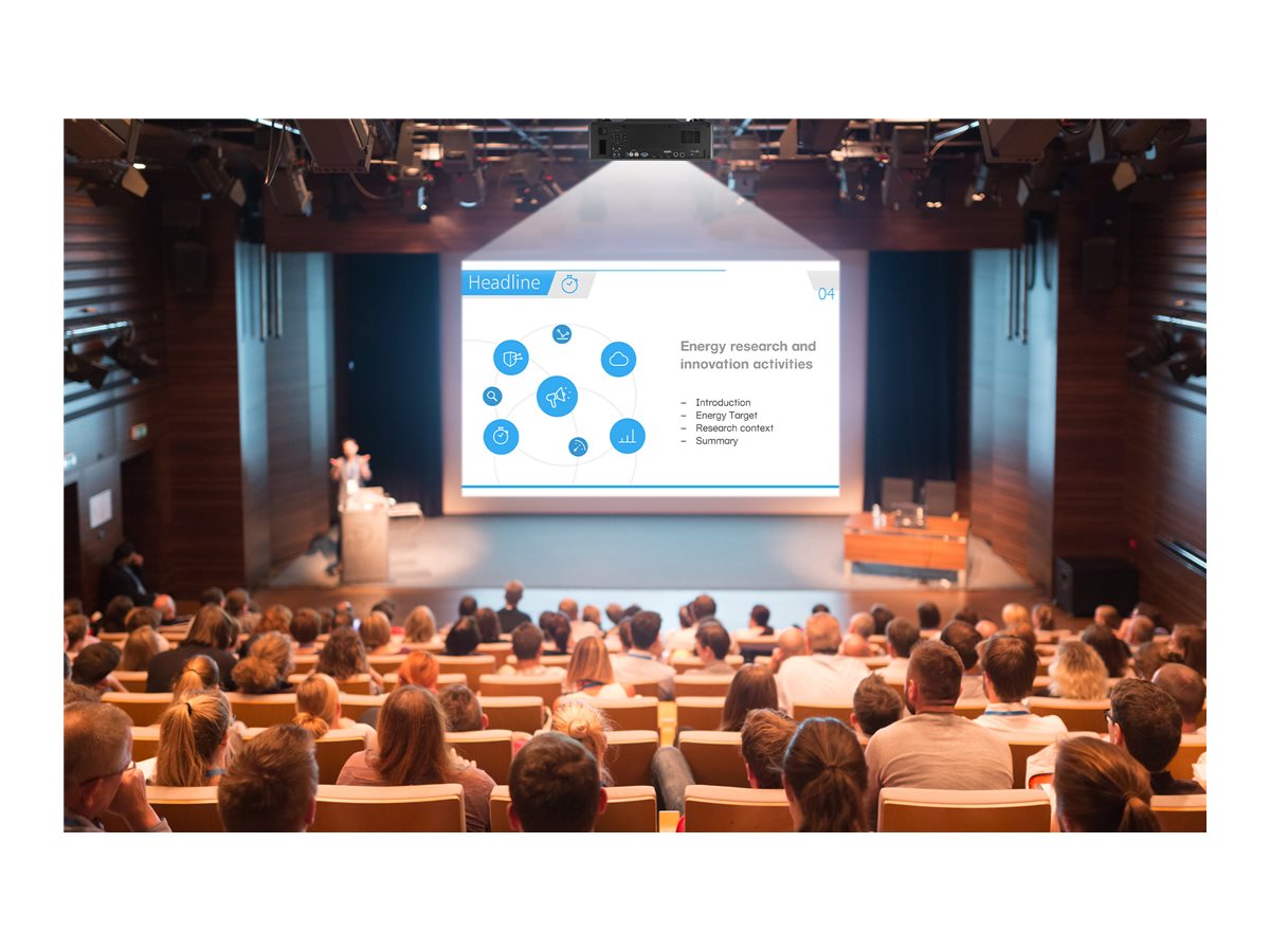 Ces capacités, combinées à la correction de l'image de la grille, à la capacité d'adaptation aux surfaces incurvées et aux multiples interfaces d'entrée, y compris HDMI 2.0 et HDBaseT, font de ces modèles les vidéoprojecteurs 4k professionnels parfaits pour les grandes installations fixes ou au plafond. Ils sont d'autant plus adaptés à ce type d'environnement en raison de leur large plage d'ajustement de l'image, avec des fonctions de zoom, de décalage de l'objectif et de mise au point entièrement motorisées et contrôlées via télécommande, ce qui facilite l'ajustement, même après montage. La technologie NCE (rehausseur de couleur naturel) permet d'obtenir plus d'un million de couleurs. Les images sont extrêmement réalistes, couvrant 97 % de la gamme internationale de couleurs Rec. 709. Par conséquent, si vous recherchez des images de haute qualité et une luminosité élevée, vidéoprojecteurs haute luminosité sont parfaits pour vous.