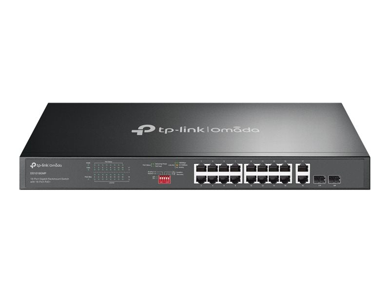 TP-Link Omada DS1018GMP V1.6 - Commutateur - non géré - 16 x 10/100/1000 (PoE+) + 2 x SFP Gigabit combiné - Montable sur rack - PoE+ (250 W)