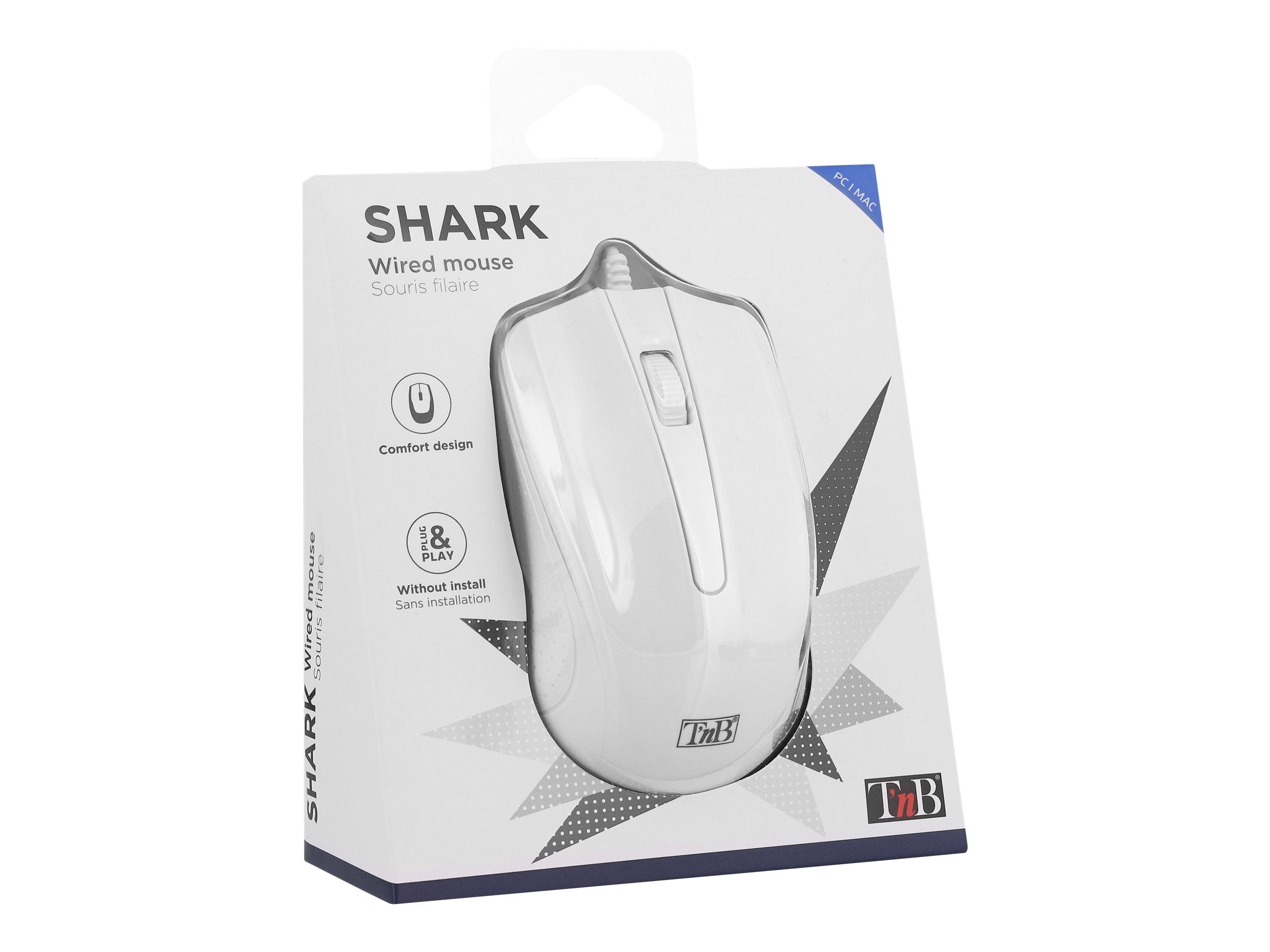 T'nB SHARK - Souris - ergonomique - optique - 3 boutons - filaire - USB - blancSouris optique filaire shark blanche.
