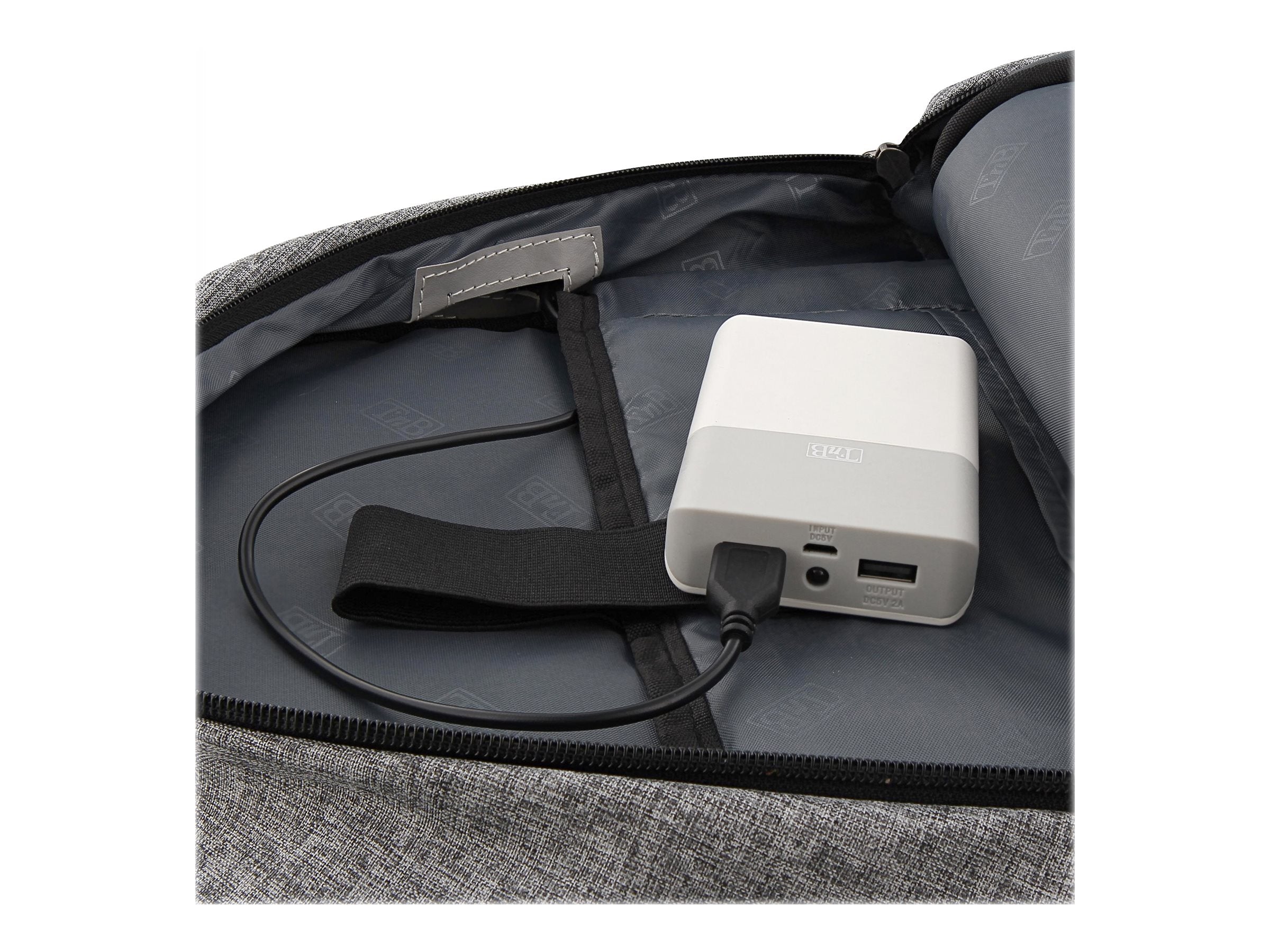 Il est également pourvu d'un port USB extérieur qui permet de recharger votre smartphone tout en laissant votre batterie de secours à l'intérieur de votre sac.
