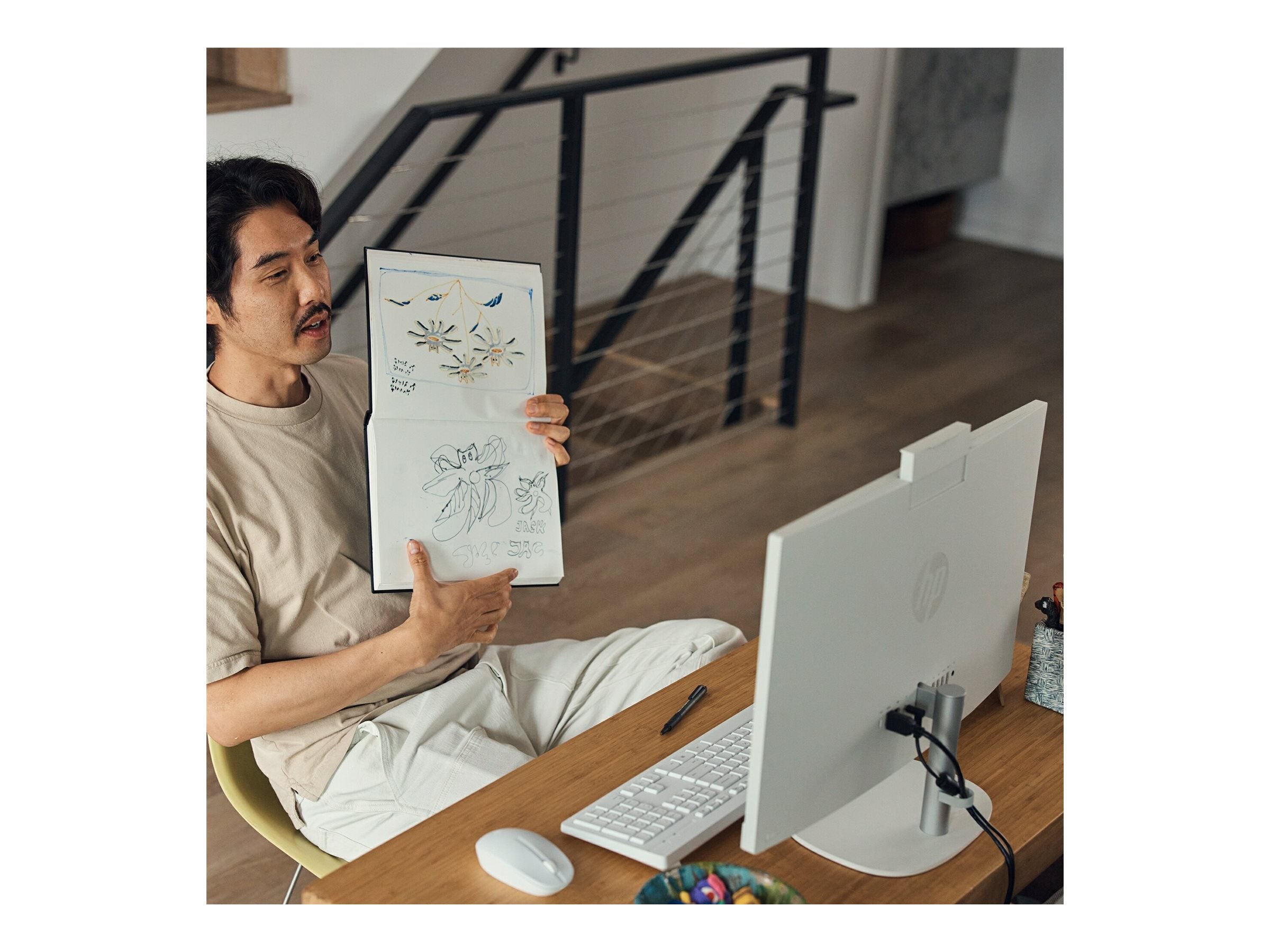 HP 24-cr0068nf - Tout-en-un N-series N300 / jusqu'à 3.8 GHz - RAM 8 Go - SSD 512 Go - NVMe - UHD Graphics - Gigabit Ethernet, IEEE 802.11ax (Wi-Fi 6), Bluetooth 5.3 - Win 11 Home - moniteur : LED 23.8" 1920 x 1080 (Full HD) - clavier : Français - Blanc coquille, finition texturéeFabriqué en gardant à l'esprit les enjeux du développement durable, l'ordinateur de bureau tout-en-un HP de 23,8 pouces arbore un design ultramince et bien pensé qui inclut des matériaux recyclés, avec tous les outils dont vous avez besoin pour travailler au quotidien.