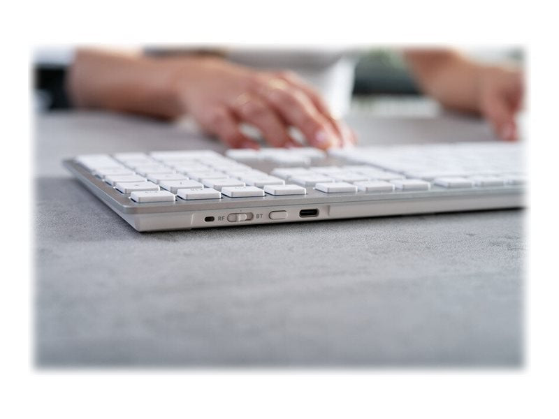 CHERRY KW 9100 SLIM - Clavier - sans fil - 2.4 GHz, Bluetooth 4.0 - Pan Nordic - commutateur : CHERRY SX - argent, blancClavier rechargeable sans fil pour les utilisateurs de Mac amoureux de design.