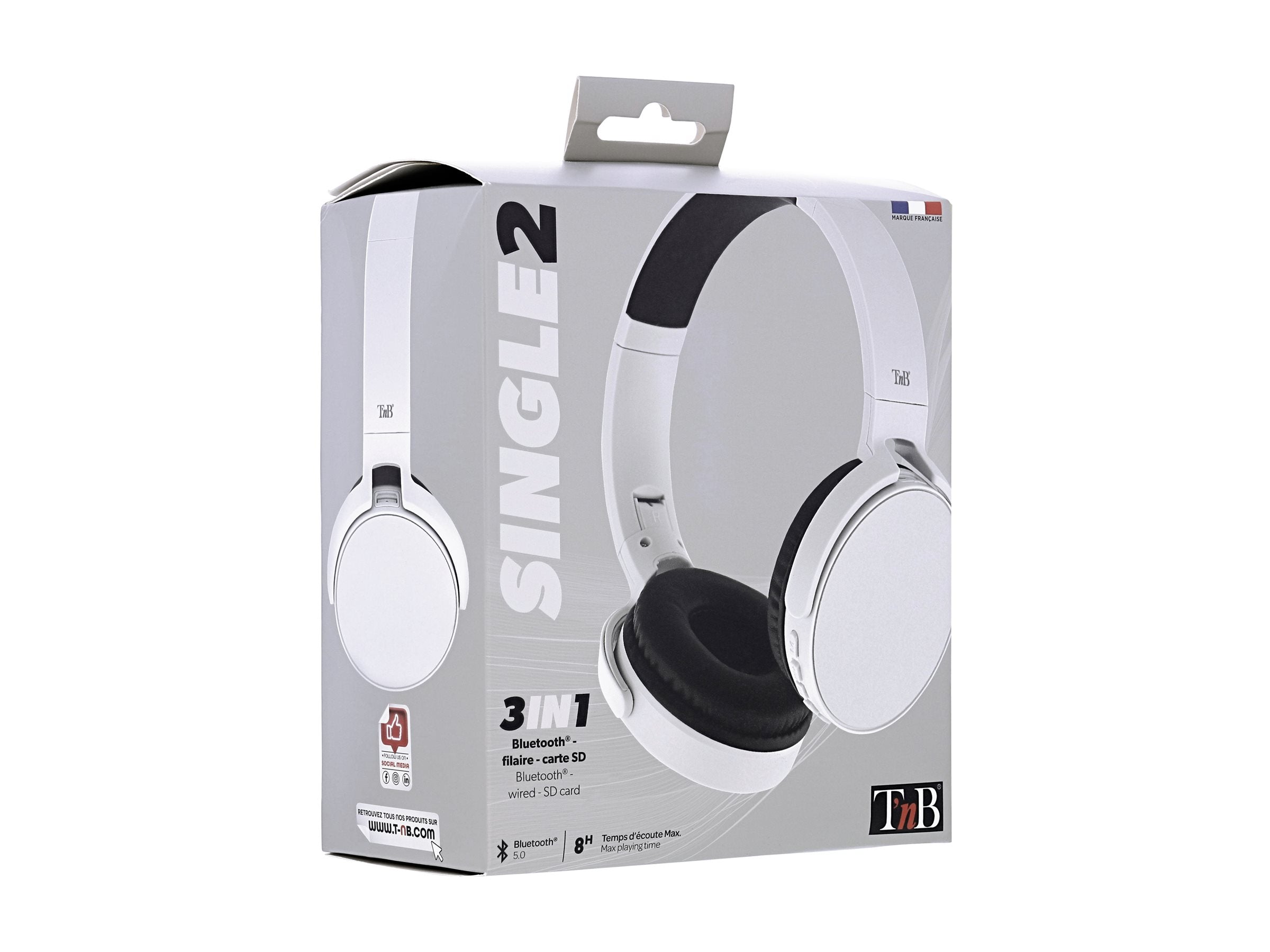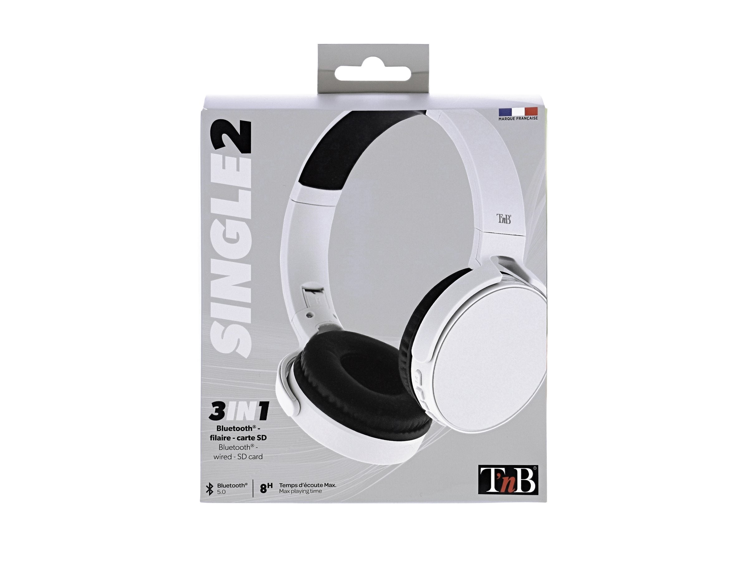 T'nB SINGLE 2 - Écouteurs avec micro - circum-aural - Bluetooth - sans fil - jack 3,5mm - argentLe casque SINGLE 2 est le casque parfait pour apprécier vos morceaux préférés en boucle. Un casque à la couleur indémodable, pour un design inimitable.