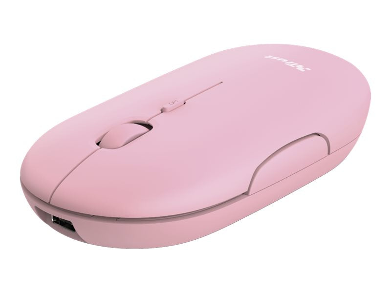 Trust Puck - Souris - droitiers et gauchers - optique - 4 boutons - sans fil - Bluetooth, 2.4 GHz - récepteur sans fil USB - rose