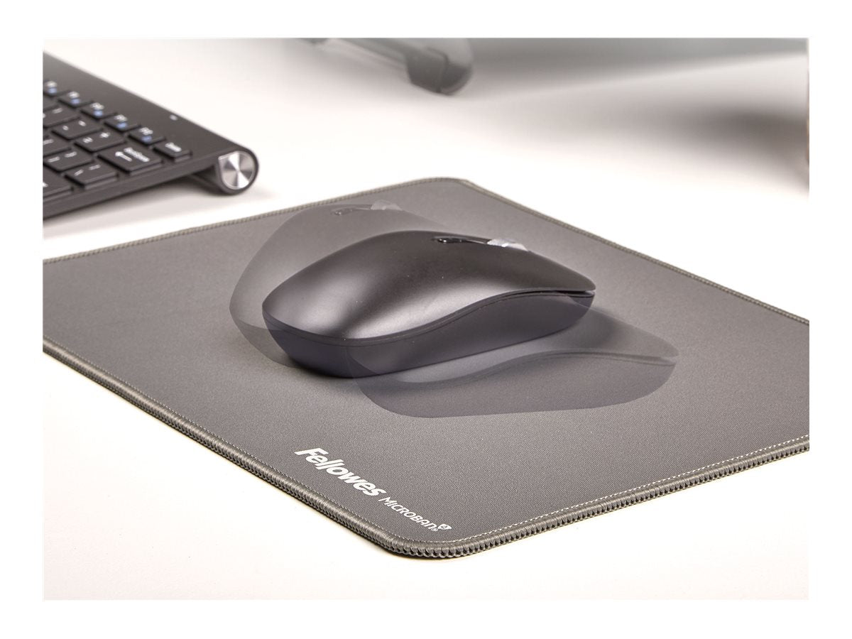 Fellowes Breyta - Tapis de souris - extra large - grisLe tapis de souris extra-large Fellowes Breyta est conçu pour améliorer l'expérience utilisateur grâce à sa surface spacieuse et sa construction durable. Fabriqué à partir de polyester et de caoutchouc de haute qualité, ce tapis de souris possède des propriétés antibactériennes, garantissant un espace de travail propre et hygiénique. Les bords cousus et renforcés assurent sa durabilité, tandis que la base antidérapante maintient le tapis en place même en cas d'utilisation intensive, ce qui le rend adapté à la fois aux environnements professionnels et informels.